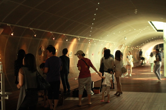 한강 뚝섬유원지 지하철역과 자벌레의 특이한 조형물로 연결되어있는 '자벌레 관(뚝섬전망문화콤플렉스)'이 특별한 전시회로 지나는 이들을 발걸음을 붙잡고 있다.