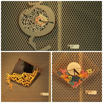 상명대학교 ‘디자인 팩토리(지도교수 전재현)’가 전시중인 '한글아, 몇 시니?Ⅱ'전에는 독특한 모양과 참신한 의미를 담은 시계들이 다수 전시되고 있다. 한글 자음과 모음을 활용해 디자인 된 30여 점의 시계들이 관객들의 눈을 사로잡고 있다.