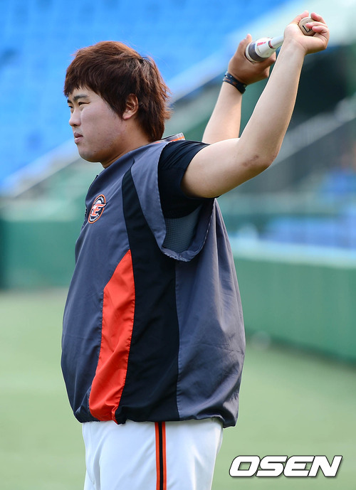 29일 오후 대전 한밭구장에서 열리는 '2012 팔도 프로야구' 한화 이글스와 삼성 라이온즈의 경기 시작전 류현진이 몸을 풀고 있다.