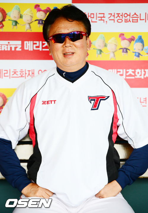 29일 오후 서울 잠실구장에서 두산 베어스와 KIA 타이거즈의 경기가 열릴 예정인 가운데 양 팀 훈련시간에 KIA 선동열 감독이 덕아웃에서 환하게 미소짓고 있다.