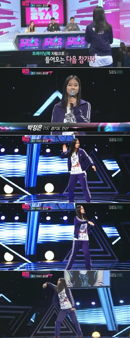 박정은은 지난 2월 'K팝스타' 배틀 오디션에서 2NE1의 '플리즈 돈 고(Please don't go)를 선곡해 파워풀한 랩과 화려한 댄스를 선사했지만, 음정이 불안했다는 평가를 받아 생방송 진출이 좌절된 바 있다.