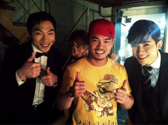 사진 속에서 소유진은 이정의 뒤에 숨어 얼굴만 빼꼼히 내미는 독특한 포즈로 눈길을 끈다. 노란 티셔츠에 빨간 모자를 쓰고 악동 같은 포스를 풍기는 이정은 말끔히 수트를 차려 입은 뮤지컬 배우들의 모습과 대비돼 웃음을 자아낸다.