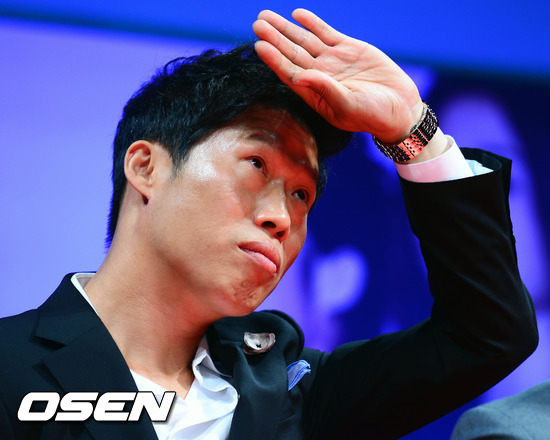 29일 오후 압구정 CGV에서 진행된 영화 '미쓰GO' 제작보고회에서 유해진이 조명을 피하는 포즈를 취하고 있다.