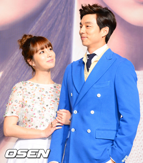 29일 오후 서울 송파구 잠실 롯데호텔 크리스탈볼룸에서 진행된 KBS 2TV 월화드라마 '빅' 제작발표회에서 이민정이 공유를 바라보고 있다.