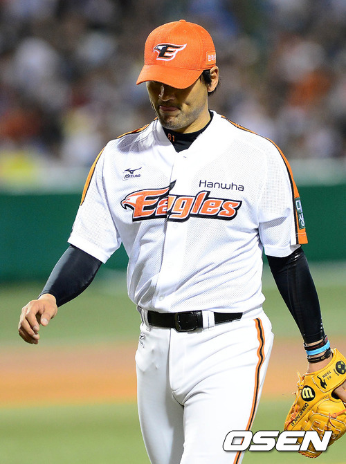 29일 오후 대전 한밭구장에서 열린 '2012 팔도 프로야구' 한화 이글스와 삼성 라이온즈의 경기 4회초 2사 박찬호가 마운드를 내려오고 있다.