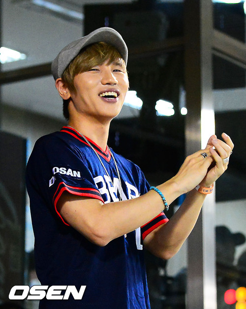 29일 오후 서울 잠실구장에서 열린 두산 베어스와 KIA 타이거즈의 경기에서 가수 케이윌이 좌석 앞에까지 나와서 박수를 치며 경기를 관전하고 있다.