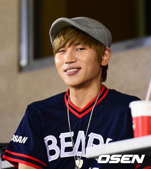 29일 오후 서울 잠실구장에서 열린 두산 베어스와 KIA 타이거즈의 경기에서 가수 케이윌이 미소지으며 경기를 관전하고 있다.