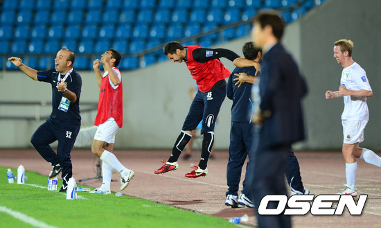 경기후 성남 신태용 감독이 아쉬워하는 반면 부뇨드코르 선수단이 기뻐하고 있다./jpnews@osen.co.kr