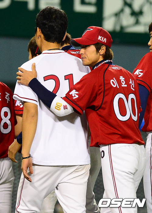 경기를 마치고 KIA 이호신이 윤석민을 위로하고 있다. / rumi@osen.co.kr