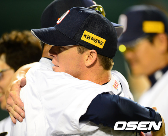 경기를 마치고 두산 프록터가 두산 정명원 투수 코치와 포옹을 하고 있다. / rumi@osen.co.kr