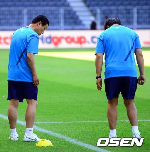 최강희 감독이 이끄는 축구 A대표팀이 29일 오후 스위스 베른 스타드 드 스위스에서 공식훈련을 가졌다