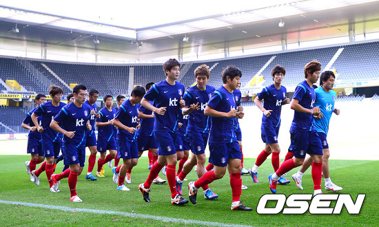 최강희 감독이 이끄는 축구 A대표팀이 29일 오후 스위스 베른 스타드 드 스위스에서 공식훈련을 가졌다