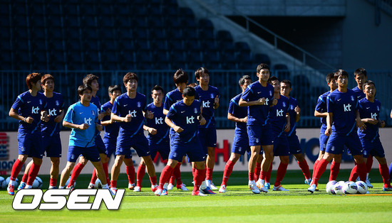 축구대표팀이 훈련에 앞서 몸을 풀고 있다/ soul1014@osen.co.kr
