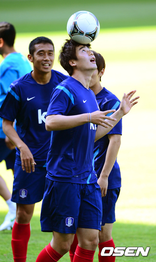 기성용이 이마로 공을 다루고 있다./ soul1014@osen.co.kr