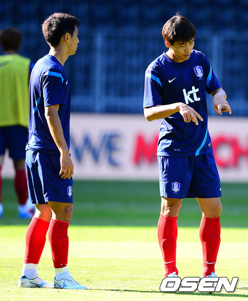 최강희 감독이 이끄는 축구 A대표팀이 29일 오후 스위스 베른 스타드 드 스위스에서 공식훈련을 가졌다