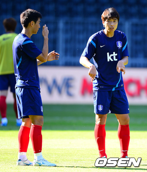 최강희 감독이 이끄는 축구 A대표팀이 29일 오후 스위스 베른 스타드 드 스위스에서 공식훈련을 가졌다.