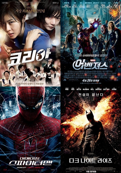 하지원과 배두나에 이어 할리우드 영화 ‘어벤져스’가 등장했다. ‘어벤져스’는 아이언맨, 헐크, 토르, 캡틴 아메리카, 호크아이, 블랙 위도우 등 미국 만화 속 슈퍼 영웅들이 총 출동한 영화로 지구가 위험에 처하게 되자 전 세계에 흩어져 있던 영웅들이 힘을 모아 외계생물을 물리치는 전형적인 영웅물이다.