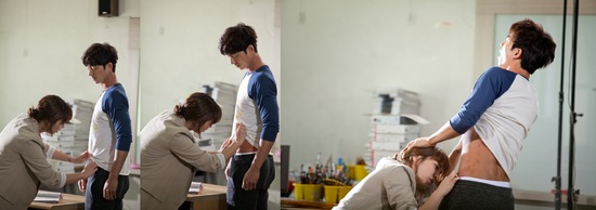하지만 30일 공개된 스틸 속 이민정의 모습은 어리버리 천하숙맥과는 거리가 멀어 보인다. 자신이 근무하고 있는 학교에서 공유의 바지를 내려 그 안을 들여다보려는 앙큼한 속내를 드러내고 있기 때문. 게다가 한술 떠 공유의 표정 또한 심상치 않다. 어쩔 줄 몰라 하며 이민정의 머리채를 움켜쥐고 있는 것.