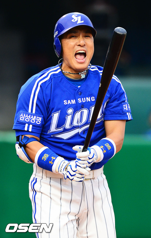 30일 오후 대전 한밭야구장에서 열린 한화 이글스와 삼성 라이온즈의 경기에서 2회초 첫타석에서 삼성 이승엽이 헛스윙을 한 후 아쉬워하고 있다.