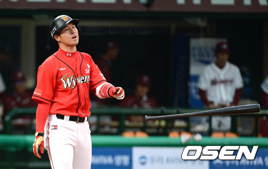 30일 오후 서울 목동야구장에서 열린 '2012 팔도 프로야구' 넥센 히어로즈와 SK 와이번스의 경기, 3회초 2사 2루 SK 최정이 삼진으로 물러나며 아쉬운 표정을 짓고 있다.