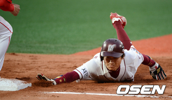30일 오후 서울 목동야구장에서 열린 '2012 팔도 프로야구' 넥센 히어로즈와 SK 와이번스의 경기, 3회말 2사 1루 넥센 서건창 타석때 1루주자 정수성이 SK 박종훈의 견제에 급히 귀루하고 있다.