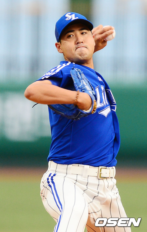 30일 오후 대전 한밭야구장에서 열린 한화 이글스와 삼성 라이온즈의 경기에서 삼성 선발 장원삼이 힘차게 공을 뿌리고 있다.
