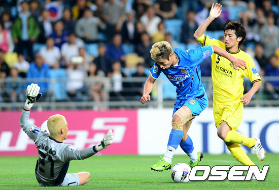 울산 현대는 이날 열린 '2012 AFC 챔피언스리그' 16강전서 후반 9분 터진 김신욱의 선제골과 후반 25분 행운의 상대 자책골, 후반 42분 이근호의 쐐기 골을 더해 레안드로 도밍게스와 다나카가 한 골씩을 만회한 가시와 레이솔(일본)을 3-2로 물리치고 8강에 올랐다. / baik@osen.co.kr