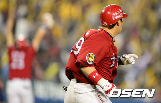 9회초 2사 1,3루에서 KIA 나지완이 타구를 바라보며 1루로 향하고 있다. 홈런으로 착각한 나지완은 펜스에 맞고 안타가 되자 1루에서 멈춰서며 1타점에 그치자 아쉬워했다./jpnews@osen.co.kr