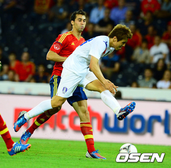 31일 새벽(한국시간) 스위스 수도 베른에 위치한 스타드 드 스위스서 열린 대한민국과 스페인의 평가전 후반 구자철이 스페인 문전을 돌파하고 있다.