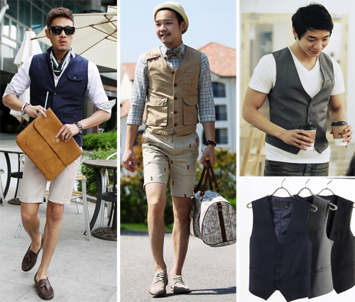깔끔한 티셔츠에 베이직한 기본 베스트를 매치하고 청바지를 입으면 캐주얼하면서 댄디한 느낌까지 더해진 룩을 완성할 수 있다. 이번시즌 유행하는 반바지와도 잘 어울린다. 이때는 너무 딱딱하지 않게 면 소재로 된 베스트를 입고 스카프로 포인트를 주면 반바지가 주는 발랄하고 가벼운 느낌을 적당히 모던하게 풀어주는 역할을 베스트가 한다.