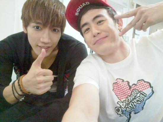 사진 속 닉쿤은 준수의 곁에서 귀엽게 브이를 그리며 애교 섞인 미소를 짓고 있다.