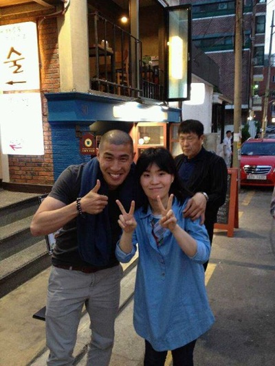 박지선은 31일 오전 자신의 트위터에 "된장에 밥 비벼 먹고 있었는데 옆 테이블에 차두리 선수가 있었다. 그때부터 된장이 콧구멍으로 들어갔다. 차범근 선생님께서도 차두리 선수와 나의 만남을 흡족해하셨다"라는 글과 함께 사진을 게재했다.