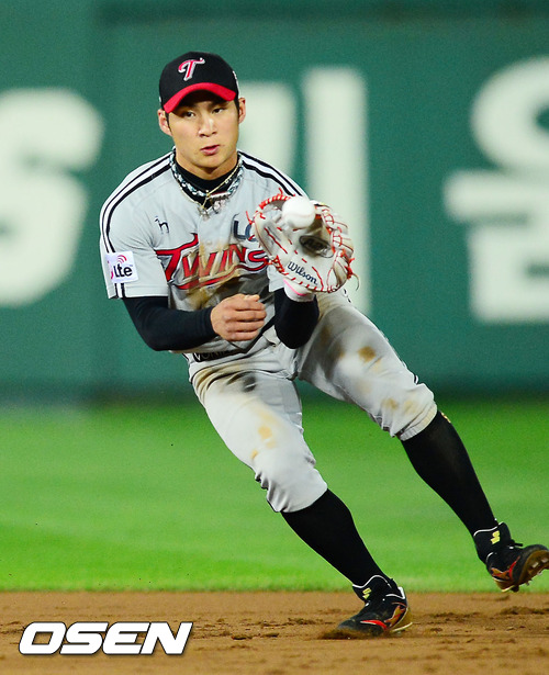 31일 오후 사직구장에서 열린 '2012 팔도 프로야구' 롯데 자이언츠와 LG 트윈스의 경기에서 8회말 2사 주자 없는 상황에서 롯데 손아섭의 타구를 LG 유격수 오지환이 실책을 범하며 놓치고 있다.