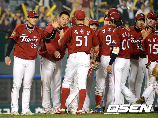 경기 종료 후 KIA 선수들이 승리의 기쁨을 나누고 있다. / sunday@osen.co.kr