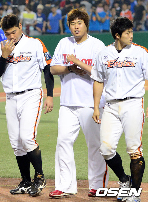 31일 오후 대전 한밭구장에서 열린 '2012 팔도 프로야구' 한화 이글스와 삼성 라이온즈의 경기 종료후 류현진이 그라운드를 빠져나가고 있다.