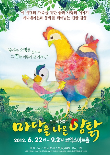 명품가족극 '마당을 나온 암탉'은 오는 22일부터 9월 2일까지 강남 코엑스아트홀에서 감동을 전한다. 티켓은 2만 원(비지정석).