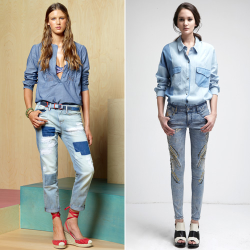 의류 브랜드 '갭'은 레이스 디테일이 더해진 데님 셔츠에 디테일이 멋스러운 데님 팬츠를 매치하여 보다 세련된 스타일을 연출했다. 레이스 디테일로 여성스러움이 물씬 풍기는 셔츠지만 패치와 스크레치 디테일이 더해진 빈티지 느낌의 팬츠와 매치하여 시크하고 감각적인 스타일을 완성했다.