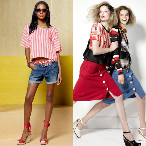 의류 브랜드 '소니아 리키엘'은 스트라이프 패턴에 군데군데 포인트 프린트가 더해져 위트를 더했다. 상큼한 컬러 블록들이 조화를 이뤄 발랄하고 러블리한 분위기를 물씬 풍긴다. 여기에 버클 디테일의 스커트와 러플 벨트를 매치해 로맨틱함을 한층 더해주고 있다. 소니아 리키엘 관계자는 "화이트 스키니 팬츠와 매치하면 시원하고 깔끔한 스타일을 완성할 수 있다"고 전했다.