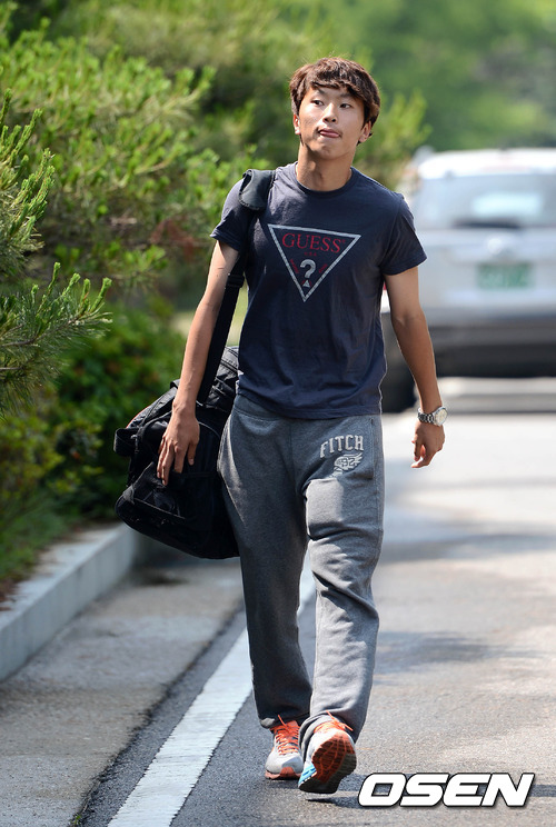 문상윤이 축구대표팀트레이닝센터로 입소하고 있다.
