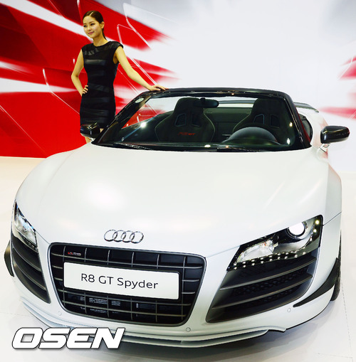 1일 '2012 부산국제모터쇼(BIMOS)'에서 아우디 'R8 GT 스파이더 5.2FSI 콰트로'가 전시되고 있다. 이 모델은 이번 모터쇼에 전시된 차량 중 가장 비싼 모델로 차값만 3억4200만원에 달한다.