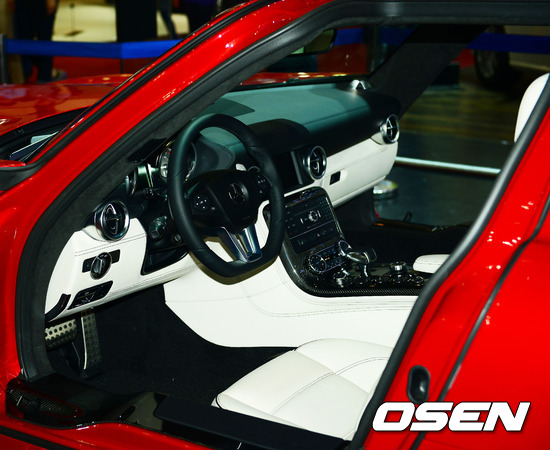 1일 '2012 부산국제모터쇼(BIMOS)'에서 메르세데스-벤츠의 ‘SLS AMG CP’가 전시되고 있다. 이 차는 2억9500만원으로 아우디 'R8 GT 스파이더 5.2FSI 콰트로'(3억4200만원)에 이어 부산 모터쇼 전시차량 중 두번째로 비싼 차량이다.