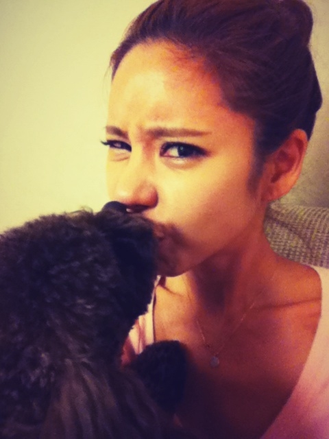 방송인 김준희가 애견으로부터 기습 키스(?)를 당했다.