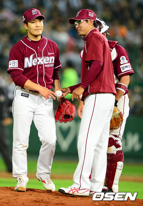 1일 오후 사직구장에서 열린 '2012 팔도 프로야구' 롯데 자이언츠와 넥센 히어로즈의 경기에서 4회말 2사 주자 2루 롯데 박종윤 타석에서 넥센 선발 김병현이 강판당하고 있다.