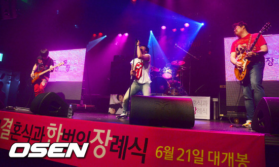 1일 오후 홍대 상상마당에서 진행된 영화 '두번의 결혼식과 한번의 장례식'(김조광수 감독) 에서 송용진밴드가 멋진무대를 선보이고 있다.