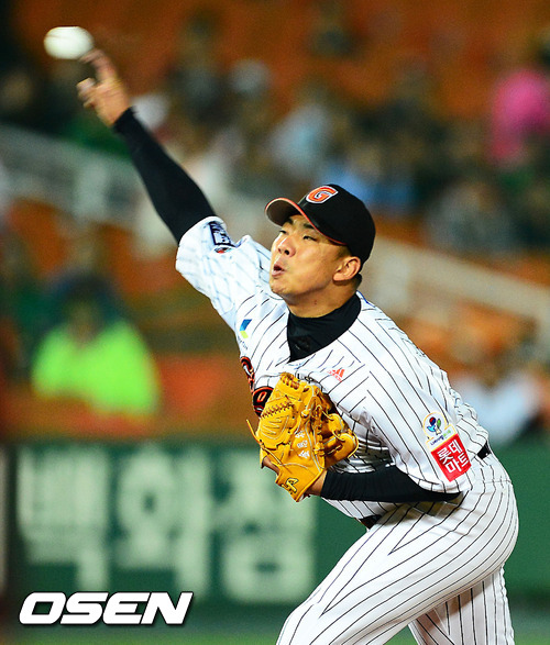 9회초 2사 주자 1,3루 넥센 박병호 타석에 마운드에 오른 롯데 김사율이 힘차게 공을 뿌리고 있다. / rumi@osen.co.kr