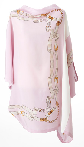 튜닉 블라우스는 마치 실크 스카프를 두른 듯한 자연스럽고 드레시한 실루엣이 특징이다. 앞면에 체인 벨트 프린트가 멋스러우며 핑크와 화이트 2가지 컬러로 선보인다.