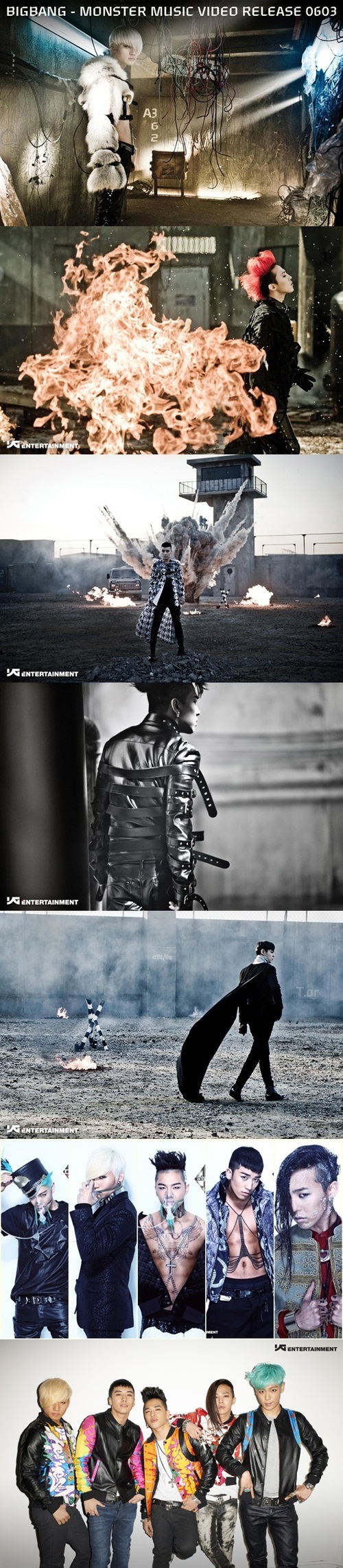 빅뱅은 지난달 29일부터 순차적으로 공개된 '몬스터' 티저 영상에서 이전과는 다른 새로운 매력을 표출했다. 공개된 영상 속에서 멤버들은 악당 이미지를 구축, 파괴적인 느낌을 물씬 자아냈다.