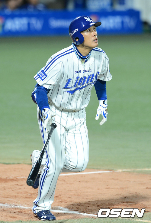 3번타자 최형우의 우전 적시타로 이어진 1사 1루 찬스. 첫 타석에 등장한 이승엽은 두산 선발 김선우의 초구 가운데 낮게 들어온 143km 투심 패스트볼을 퍼올렸다. 타구는 가운데 담장을 그대로 넘어가는 비거리 125m 투런 홈런. 지난달 29일 대전 한화전 이후 4경기 만에 터진 시즌 10호 홈런이었다.