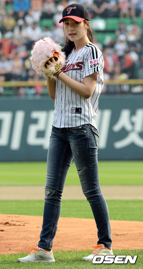 '예쁜 깃털 달린 글러브 끼고 시구하는 공현주'