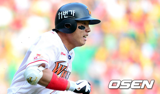 2일 오후 인천 문학구장에서 열린 '2012 팔도 프로야구' SK 와이번스와 KIA 타이거즈의 경기 3회말 2사 박재상이 우중간 2루타를 치고 베이스를 뛰고 있다.